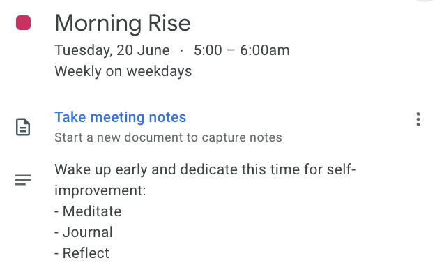 This calendar provides a balanced and intentional approach to the day, with a focus on self-improvement and personal growth. Adopting this schedule can lead to increased productivity, focus, and fulfilment.